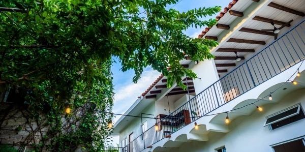 Hotel Pet Friendly & Restaurante Bistro frente al mar, ubicado junto a la plaza principal de Chacala, justo donde las olas son más tranquilas.