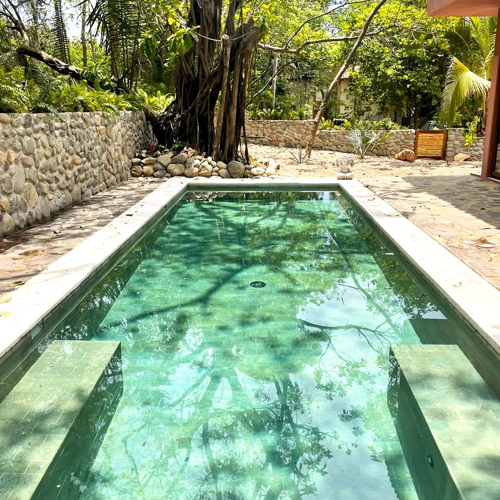 A beautiful private pool with sun loungers and an outdoor dining area so that you feel as if the Nayarit jungle embraces you.